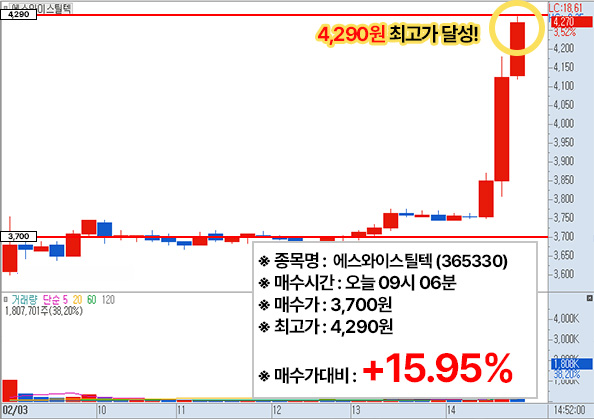 무료관심주 에스와이스틸텍 1차목표가 달성 !!