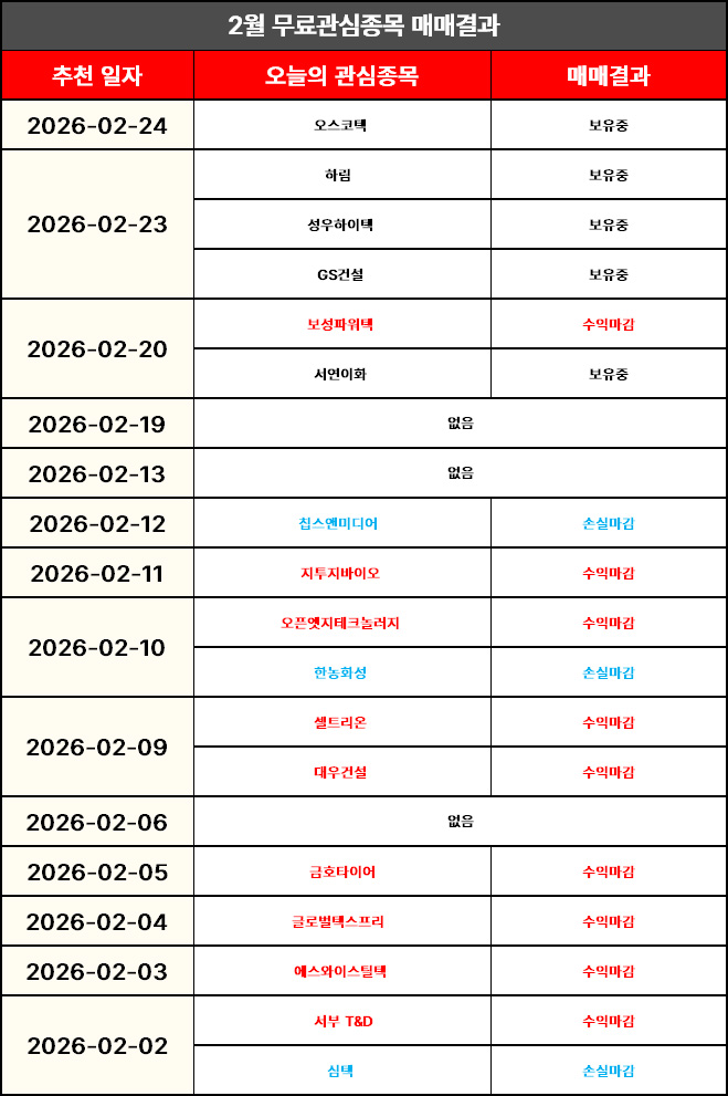 장 마감 후 무료관심종목 결산내역 올려드리도록 하겠습니다.
