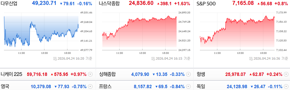 이날 美 증시는 인텔의 호실적, 미국과 이란 간 협상 기대가 반영되며 기술주 중심의 상승 장세를 보였습니다. 물론 주말간 2차 협상은 결렬되었지만, 시장의 기대는 꺾이지 않은 모습인데요.