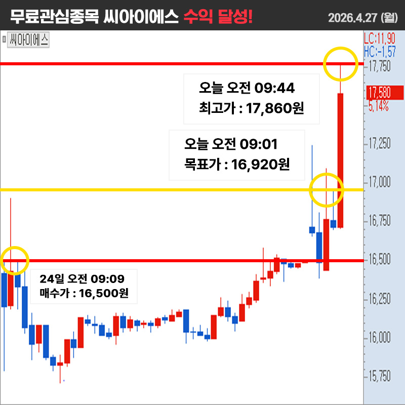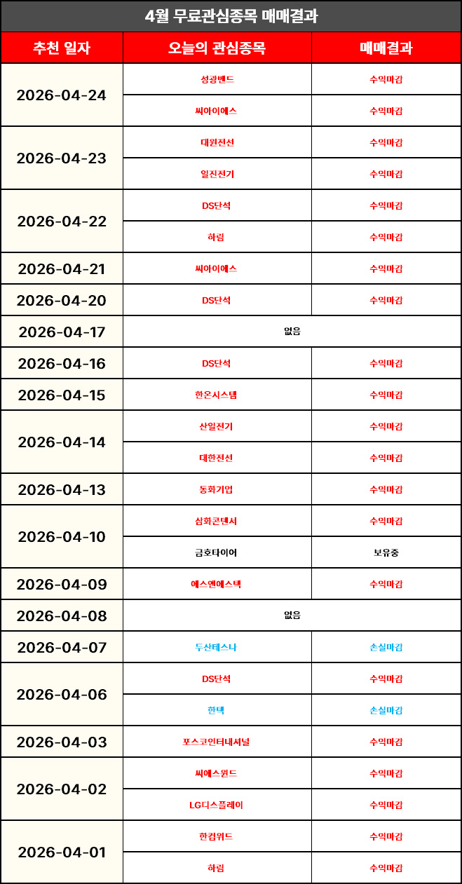 장 마감 후 무료관심종목 결산내역 올려드리도록 하겠습니다.