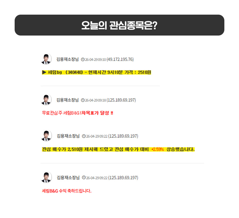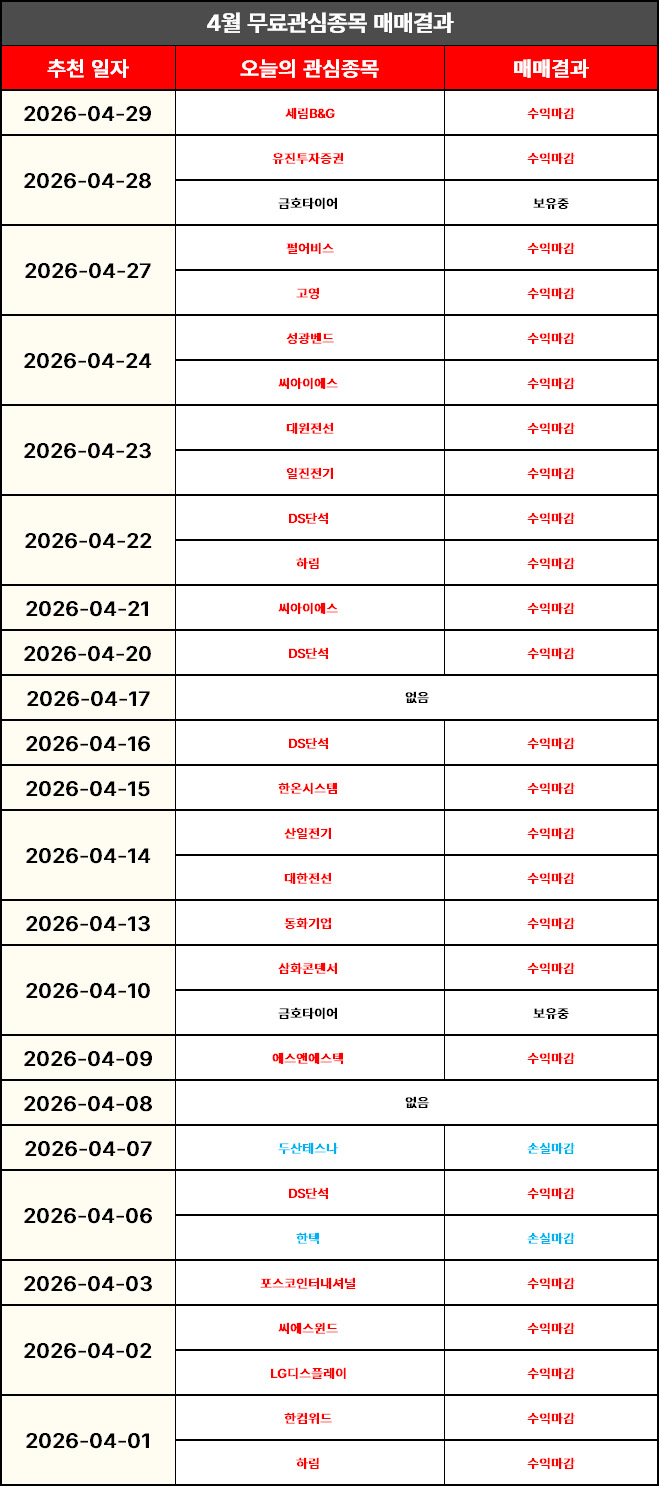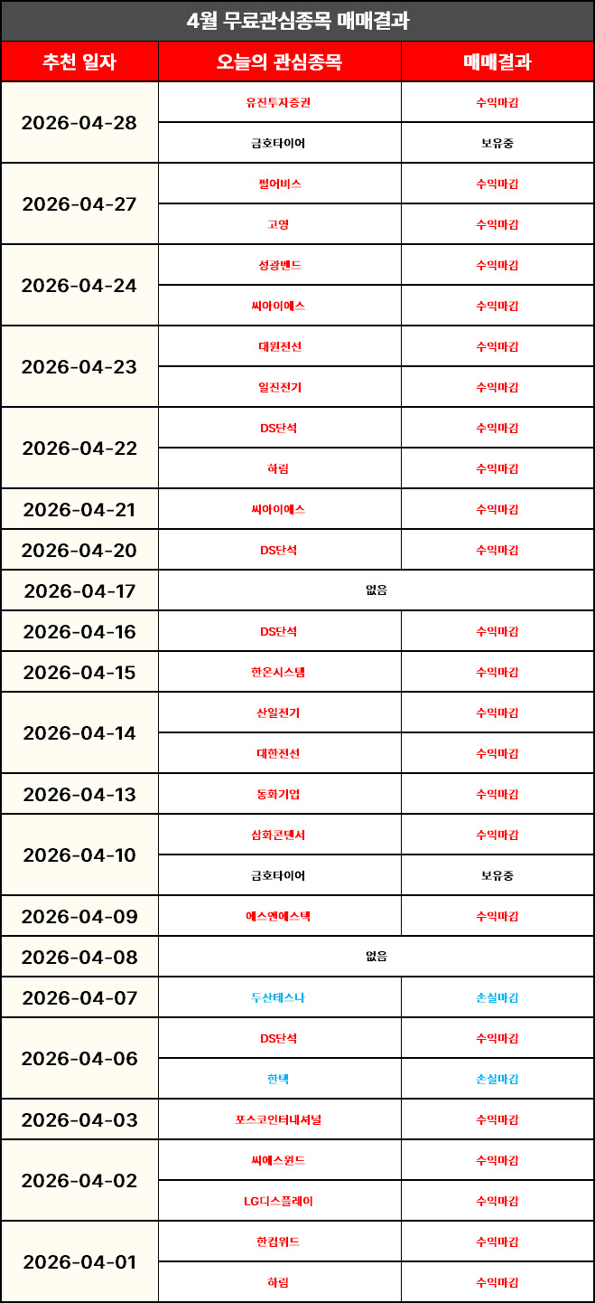 [금일 무료관심종목 결과 정리]
