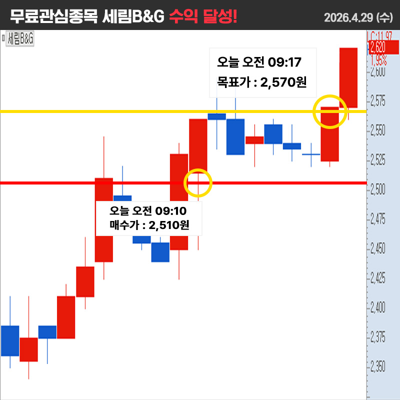 무료관심주 세림B&G1차목표가 달성 !!