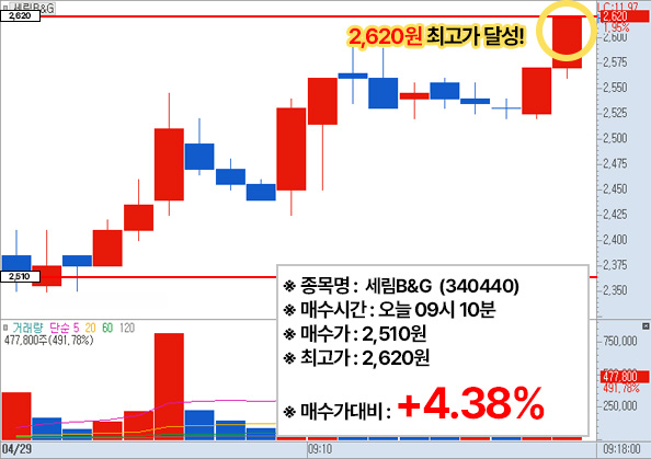 ▶ 세림bg (340440) - 현재시간 9시10분 가격 : 2510원