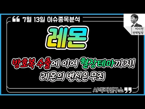 레몬 (294140) - 방호복 수출에 이어 혈장테마까지! 레몬의 변신은 무죄