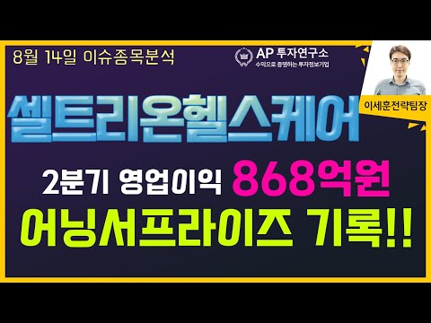 셀트리온헬스케어(091990) - 2분기 영업이익 868억원 어닝서프라이즈 기록!!